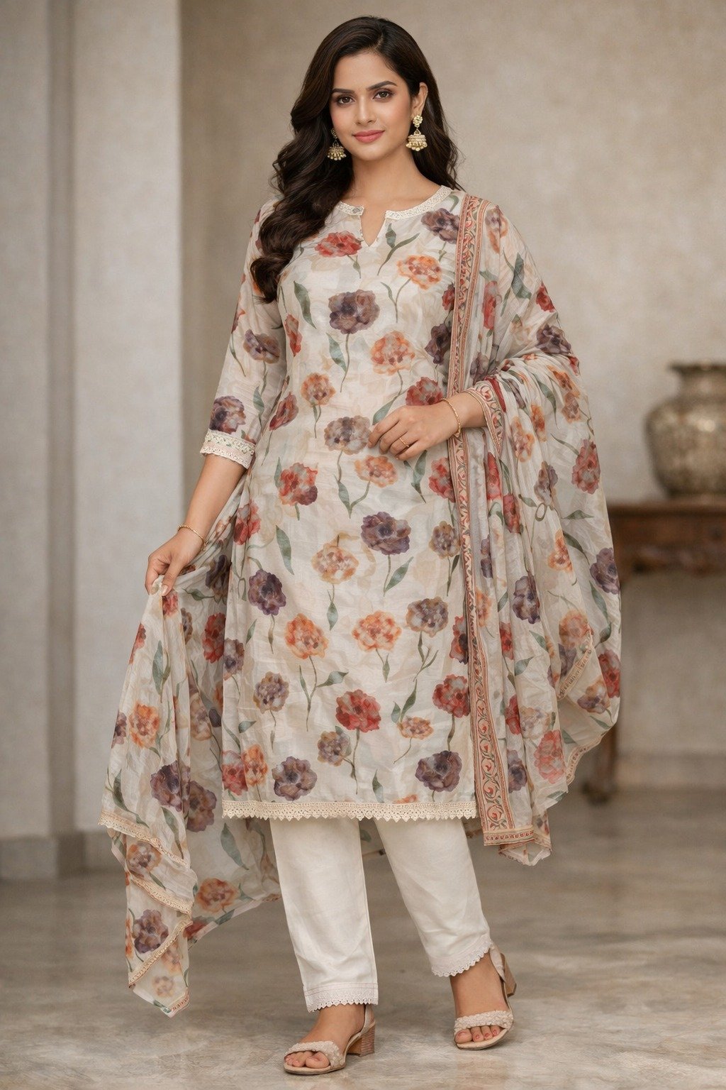 Elegant and timeless, this printed crepe silk suit material is designed for a refined and graceful look. Made from smooth, flowy crepe silk, it offers a soft texture with a subtle sheen that drapes beautifully. Perfect for stitching into sophisticated suits or ethnic ensembles, this unstitched fabric is ideal for festive occasions, formal wear, or stylish everyday elegance.